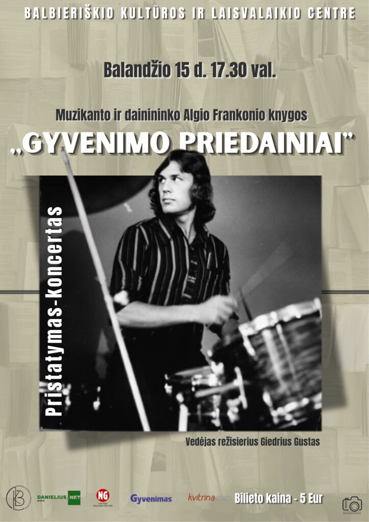 Kviečiame į ypatingą vakarą! Balandžio 15 d. 17:30 val. Balbieriškio kultūros ir laisvalaikio centre vyks muzikanto ir dainininko ALGIO FRANKONIO knygos pristatymas–koncertas „Gyvenimo priedainiai“. Jūsų laukia: • Gyva muzika • Prisiminimai ir istorijos • Jauki, įkvepianti atmosfera Vedėjas – režisierius Giedrius Gustas Bilieto kaina – 5 Eur Ateikite pasiklausyti, pabūti kartu ir pasinerti į muzikos […]